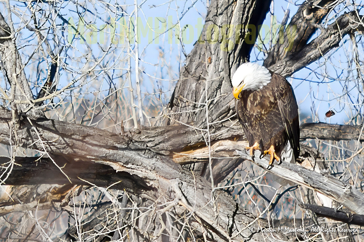 The eagle’s sharp gaze scans the cool, flowing Chama River below, searching for a swimming meal to pass its way.