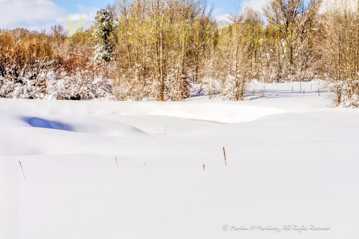 The snowbank, formed by the heavy snowstorm, glistened under the winter sun on the Chama mountainous terrain.