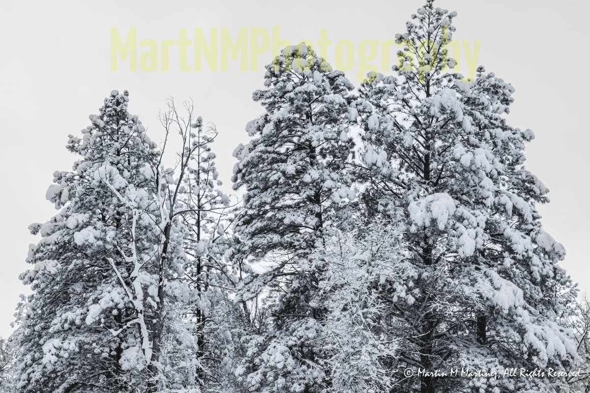 As the snow storm pummels the town of Chama, these evergreen amigos are barely visible through the thick white curtain.